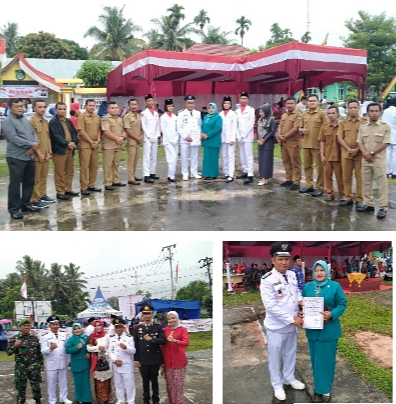 RIAUMADANI. COM. ROKANHULU - Dalam rangka memperingati Detik-detik HUT Kemerdekaan RI ke-78 Pemerintah Kecamatan Rambah Hilir Kabupaten Rokan Hulu mengadakan upacara Penaikan Bendera Merah Putih, sebagai Inspektur Upacara, Camat Rambah Hilir H.Agus.