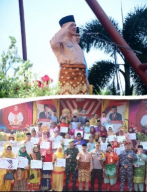 RIAUMADANI. COM, BENGKALIS - Wakil Bupati Dr.H Bagus Santoso memimpin Upacara Peringatan Hari Pendidikan Nasional (Hardiknas) di Lapangan Tugu Bengkalis. Kamis, 2 Mei.