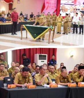 RIAUMADANI. COM, BENGKALIS - Bupati Bengkalis Kasmarni, diwakili Wakil Bupati H Bagus Santoso menghadiri seremonial Pelepasan serta Penyerahan Bantuan Sosial kepada Masyarakat Pulau Rupat, dalam program Pembinaan Fungsi Perbatasan Wilayah Nasional.