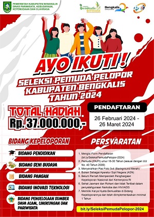 RIAUMADANI. COM, BENGKALIS - Pemerintah Kabupaten Bengkalis melalui Dinas Pariwisata, Kebudayaan, Kepemudaan dan Olahraga Kabupaten Bengkalis, menggelar Seleksi Pemuda Pelopor Kabupaten Bengkalis Tahun.