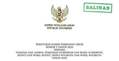 RIAUMADANI. COM, BENGKALIS - Komisi Pemilihan Umum (KPU) Republik Indonesia (RI) secara resmi mengeluarkan Peraturan KPU (PKPU) Nomor 2 Tahun 2024 Tentang Tahapan Pemilihan Gubernur dan Wakil Gubernur, Bupati dan Wakil Bupati, serta Walikota dan.