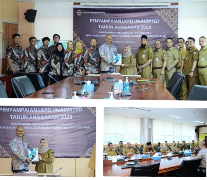 RIAUMADANI. COM, PEKANBARU - Bupati Bengkalis Kasmarni menyerahkan Laporan Keuangan Pemerintah Daerah (LKPD) Unaudited (laporan yang belum diaudit) tahun 2023 kepada Badan Pemeriksa Keuangan (BPK) RI Perwakilan Provinsi.