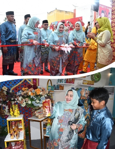 RIAUMADANI. COM, PINGGIR - Bupati Kasmarni membuka secara resmi Pameran Stand Bazar MTQ ke-48 Kabupaten Bengkalis 2023 yang dipusatkan di depan Astaka Utama.