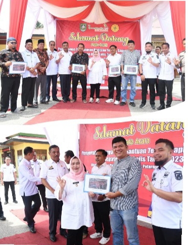 RIAUMADANI. COM, BATHIN SOLAPAN - Bupati Bengkalis Kasmarni menyerahkan langsung bantuan ternak sapi dan kambing pada kelompok ternak yang ada di Negeri Junjungan. Bantuan ternak sapi dan kambing ini diserahkan Bupati Kasmarni di halaman Kantor Desa.