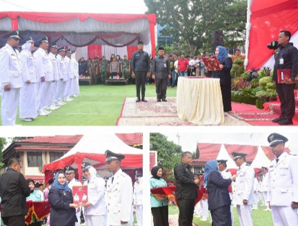 RIAUMADANI. C0M, MANDAU - Bupati Bengkalis Kasmarni melantik dan mengambil sumpah pelantikan Penjabat (Pj) Kepala Desa (Kades) se-Kabupaten Bengkalis, Jum'at, 1 September 2023 di halaman Kantor Camat.