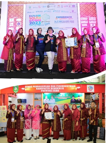 RIAUMADANI. COM, BATAM - Dinas Perdagangan dan Perindustrian (Disperindag) Kabupaten Bengkalis bekerja sama dengan Dewan Kerajinan Nasional Daerah (Dekranasda) Kabupaten Bengkalis mengikuti Pameran Explore South Sumatera 2023 di Atrium Nagoya Hills.