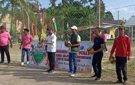 RIAUMADANI. COM, BENGKALIS - Camat Bengkalis Taufik Hidayat membuka secara resmi Turnamen Bola Voli Putri Antar Desa Se Pulau Bengkalis Cup II tahun 2023 di lapangan Bola Voli Kampong Zapin Desa Meskom Kecamatan Bengkalis, Selasa (25/07/2023) sekira.