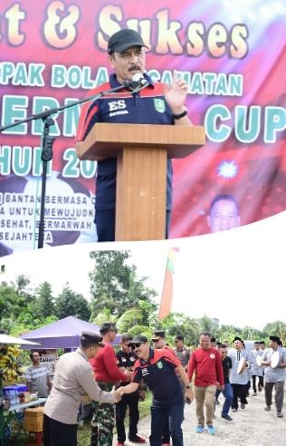 RIAUMADANI. COM, BANTAN - Bupati Bengkalis diwakili Kepala Dinas Disparbudpora Edi Sakura, membuka turnamen sepak bola Bermasa Cup Kecamatan Bantan, Senin sore 17 Juli 2023 di Stadion Tok Simon Desa Berancah Kecamatan.