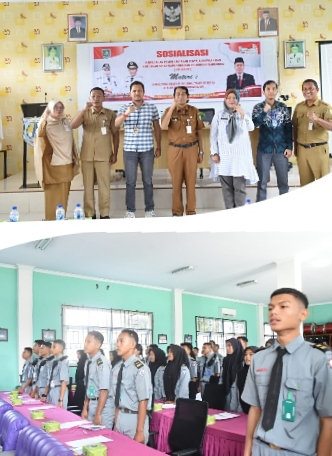 RIAUMADANI. COM, BATHIN SOLAPAN - Bupati Bengkalis Kasmarni diwakili Asisten Administrasi Umum Aulia, membuka secara resmi Sosialisasi Pencegahan Dan Pemberantasan Penyalahgunaan dan Peredaran Gelap Narkotika (P4GN) di SMKN 3 Mandau Kecamatan Bathin.
