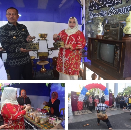 RIAUMADANI. COM, BENGKALIS - Bupati Bengkalis Kasmarni bersama Wakil Bupati Bengkalis H Bagus Santoso membuka Expo Ekonomi Kreatif Pesona Bermasa 2023, Kamis, 16 Maret 2023 di halaman Wisma Daerah Sri Mahkota.