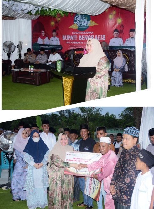RIAUMADANI. COM, PINGGIR - Bupati Bengkalis Kasmarni melaksanakan Safari Ramadhan di Masjid Al Ubudiyah, Kelurahan Balai Raja, Kecamatan Pinggir. Minggu, 26 Maret.