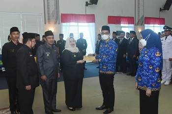 BENGKALIS – Usai melantik Pejabat Pengawas dan Administrator, Bupati Bengkalis menyerahkan Surat Keputusan (SK) tentang pengangkatan Pegawai Negeri Sipil (PNS) formasi tahun.