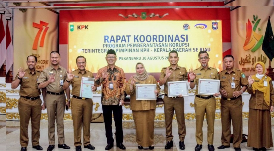 PEKANBARU - Bupati Bengkalis Kasmarni mengikuti Rapat Koordinasi (Rakor) Pemberantasan Korupsi Terintegrasi bersama Pimpinan Komisi Pemberantasan Korupsi (KPK).
