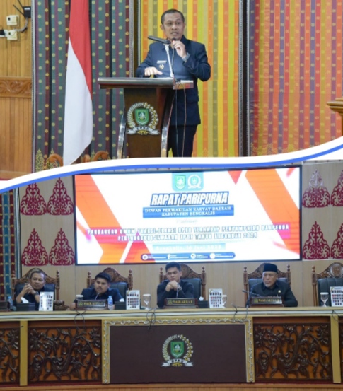 BENGKALIS. RIAU MADANI. COM - Bupati Bengkalis Kasmarni diwakili Wakil Bupati Bagus Santoso menyampaikan pandangan umum fraksi DPRD Kabupaten Bengkalis terhadap pertanggungjawaban pelaksanaan APBD Kabupaten Bengkalis tahun anggaran.