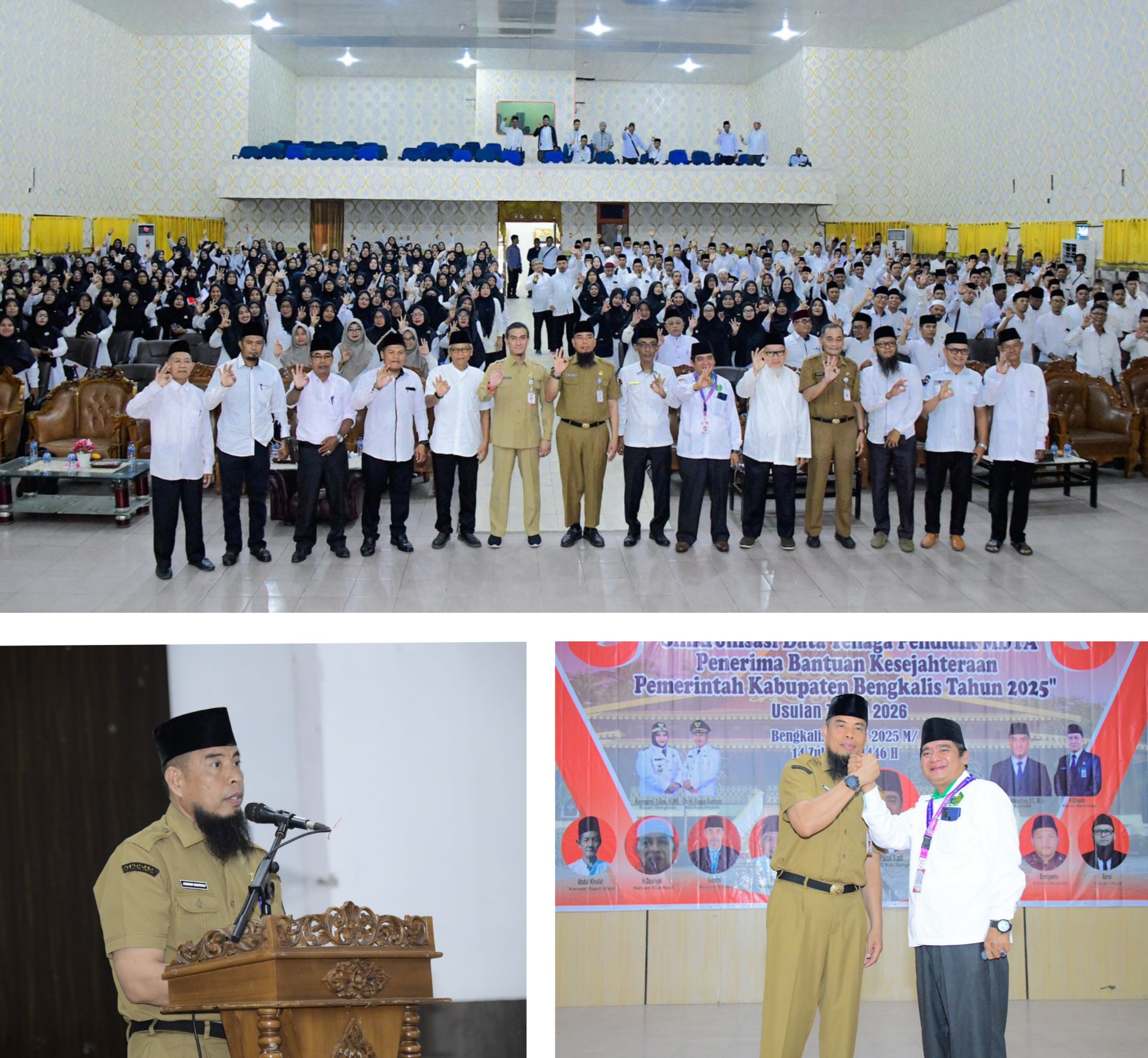 BENGKALIS. RIAU MADANI. COM - Bupati Bengkalis Kasmarni, diwakili Asisten Pemerintahan dan Kesejahteraan Rakyat Andris Wasono, membuka secara resmi kegiatan Sinkronisasi Data Guru Penerima Bantuan Kesejahteraan pada Sekolah MDTA dan Madrasah.