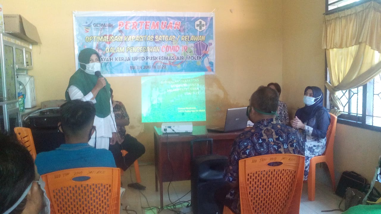 JatiRejo,lnhu,RIAUMADANI.com-Tim penyuluh kesehatan UPTD Pukesmas Air Molek, Kecamatan Pasir Penyu melaksanakan optimalisasi kapasitas Satgas Relawan dalam pencegahan Covid -19 di Desa Jati Rejo.Kegiatan tersebut.