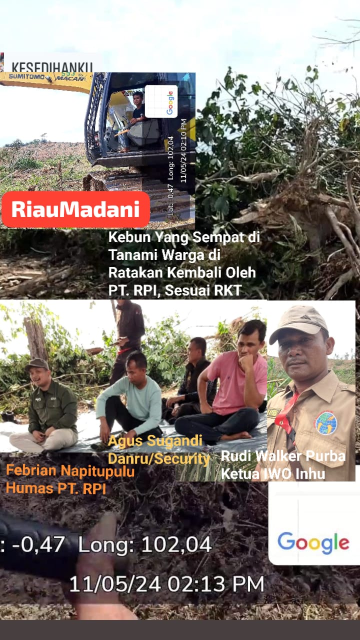 Kelayang, Inhu, RIAUMADANI.com- PT.RPI (Rimba Peranap Indah) yang berada di desa Simpang Kota Medan, Dusun Tujuh, Kecamatan Kelayang, Kabupaten Inhu dengan sengaja mengeksekusi kebun masyarakat tanpa win win solution.
