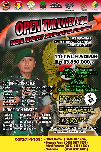 Air Molek, Inhu, RIAU MADANI. com - Dalam rangka menyambut Hari Ulang Tahun Tentara Nasional Indonesia HUT- TNI Ke- 77 Tahun 2022, Kodim 0302 Indragiri Hulu (INHU) mengadakan berbagai ragam perlombaan yang melibatkan masyarakat umum, diantaranya.