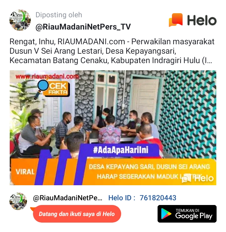 Rengat, Inhu, RIAUMADANI.com- Perwakilan masyarakat Dusun V Sei Arang Lestari, Desa Kepayang Sari, menyambangi kantor PLN UP3 Rengat. Perwakilan masyarakat yang didampingi Arbain tersebut di sambut baik oleh pimpinan, Manager.