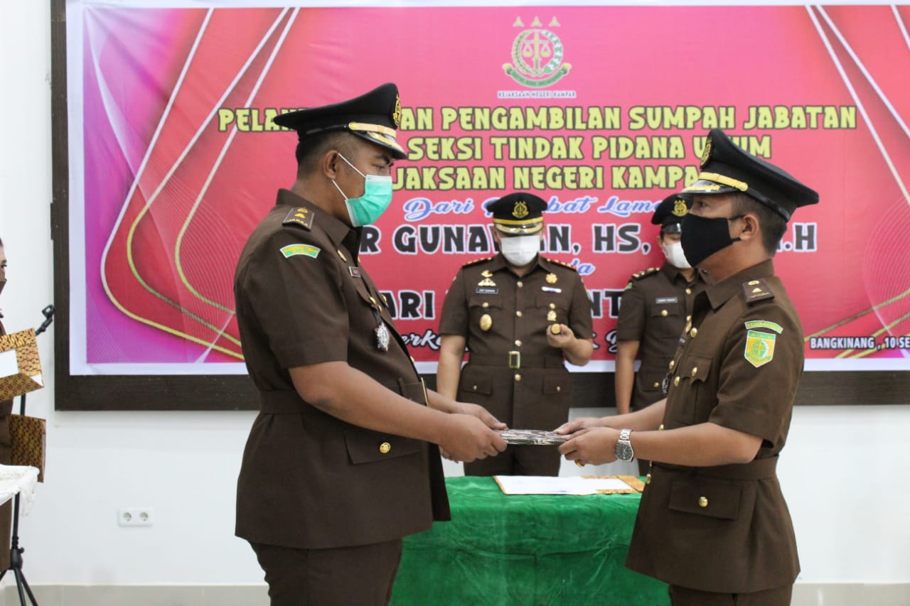 RIAUMADANI. COM - Kejaksaan Negeri (Kejari) Kampar laksanakan serah terima jabatan dan pelantikan Kepala Seksi Pidana Umum (Kasi Pidum) yang digelar di aula kantor Kejari Kampar, Jumat.