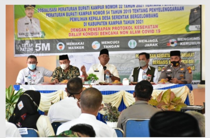 RIAUMADANI. COM - Menjelang pelaksanaan Pemilihan Kepala Desa serentak yang insyaallah hari Hnya akan diadakan pada 17 November 2021, pemerintah Kabupaten Kampar melakukan sosialisasi Perbup nomor 54 tahun 2021btentang Pilkades.