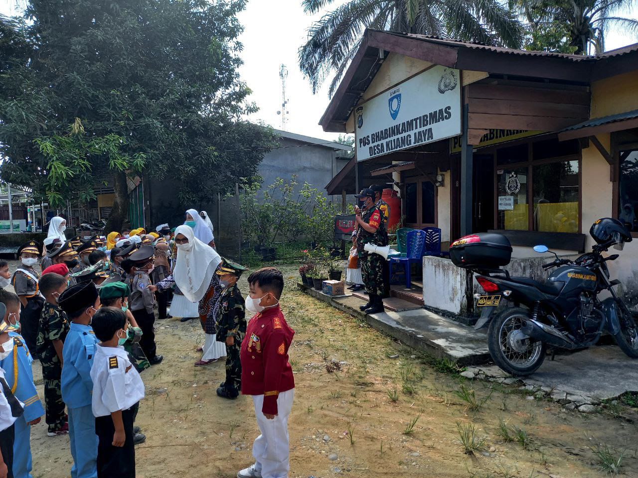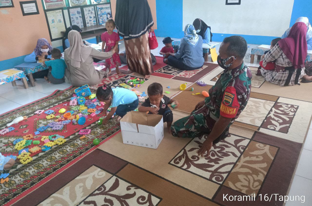 TAPUNG HILIR - Sertu Harjono Babinsa Koramil 16/Tapung Kodim 0313/Kampar sambangi sekolah PAUD Mawar, Desa Tapung Makmur, Kecamatan Tapung Hilir, Kabupaten Kampar. Kamis.