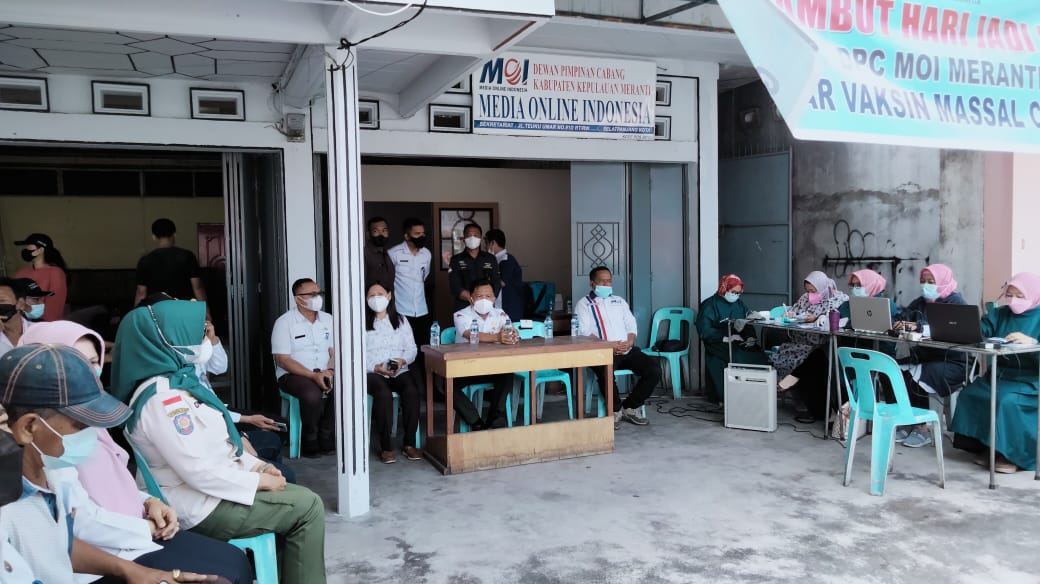 RIAUMADANI. COM - Dalam Rangka Memperingati Hari HUT Yang Ke-3 (MOI) Media Online Indonesia Berkerja Sama Dengan Pemerintah Daerah Gelar Vaksinasi Massal kegiatan Tersebut lansung Di buka Oleh Wabup Meranti AKBP.