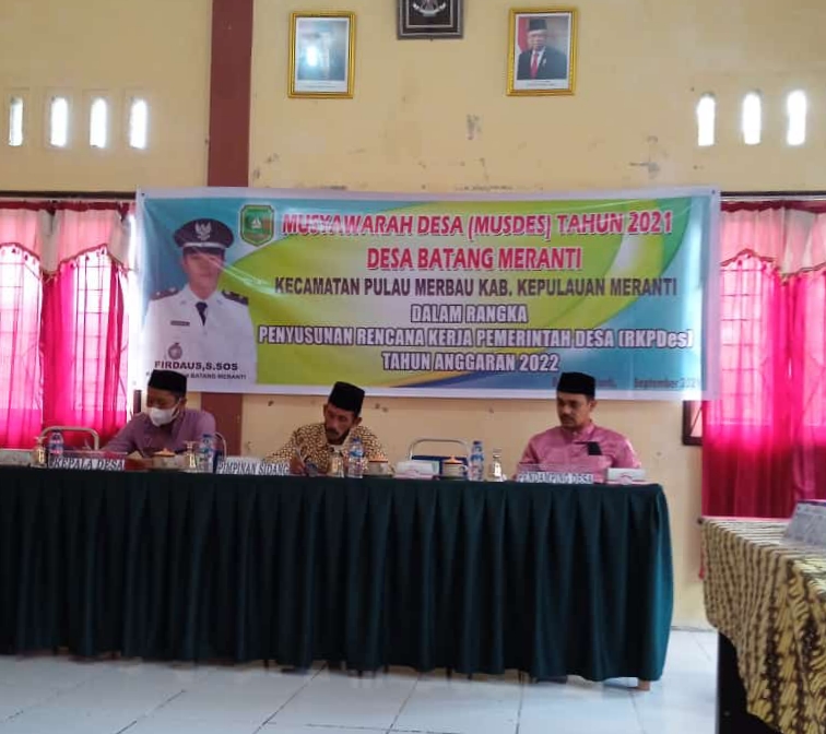 RIAUMADANI. COM - Pemerintahan Desa Batang Meranti, Kecamatan Pulau Merbau, Kabupaten Kepulauan Meranti, menggelar rapat Musyawarah Desa (Musdes) Rencana Kerja Pemerintah Desa.