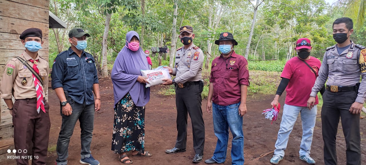 RIAUMADANI. COM - Polsek Tebingtinggi Barat, Kepulauan Meranti, bekerjasama dengan penggiat sosial RCommunity membagikan 1000 Kg beras, 1000 masker dan 1000 bendera kepada masyarakat, Senin.