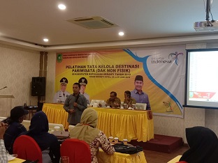 SELATPANJANG. RIAUMADANI. COM - Dinas Pariwisata Kabupaten Kepulauan Meranti melaksanakan Pelatihan Tata Kelola Distinasi Pariwisata (Dak/Non fisik) yang dilaksanakan di lantai 3 Ballroom Gran Meranti Hotel Selatpanjang.