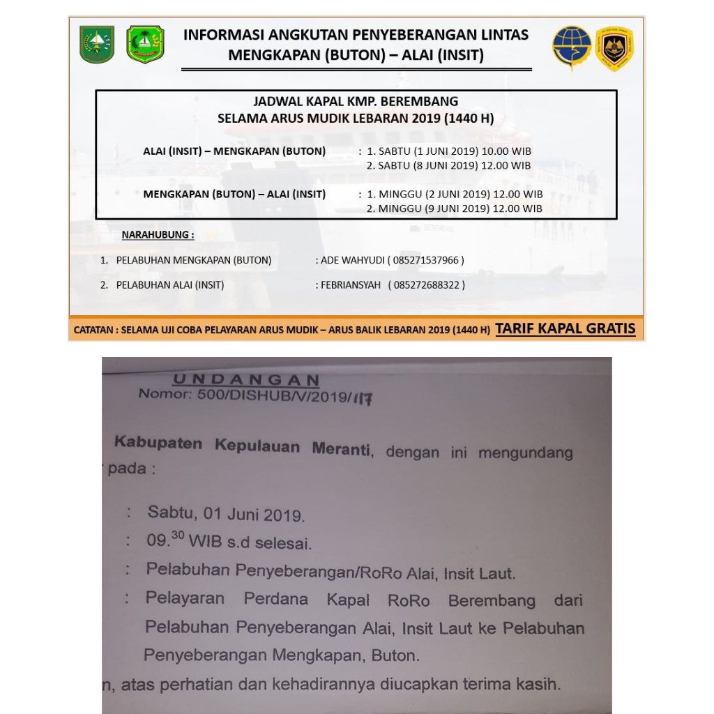 SELATPANJANG. RIAUMADANI. com - Dinas Perhubungan Kelautan Kabupaten Kepulauan Meranti melaksanakan persemian Roro yang akan nantinya beroperasi di Inset laut dan Buton yang disegerakan sabtu pagi.