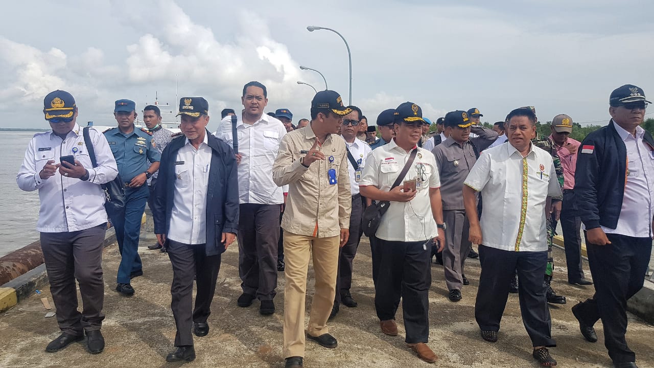 SELATPANJANG. RIAUMADANI. com - Waki Bupati Kepulauan Meranti H. Said Hasyim bersama Tim Kemenko Polhukam yang dipimpin oleh Asisten Deputi Koordinasi Wilayah Perbatasan dan Tata Ruang Pertahanan Menkopolhukam RI Brigjend. TNI Yasid Sulistya dan.