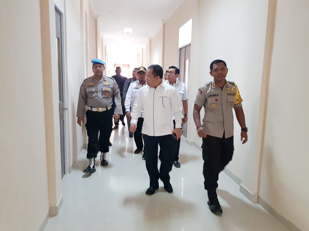 SELATPANJANG. RIAUMADANI. com - Bupati Kepulauan Meranti Drs. H. Irwan M.Si didampingi Sekda Meranti H. Yulian Norwis SE dan Kabag Humas dan Protokol Meranti dan Kabag Umum Sekda, melakukan peninjauan ke Gedung Mapolres.