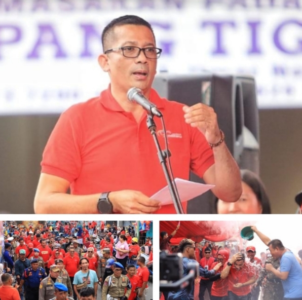 RIAU MADANI. COM. SELATPANJANG - Bupati Kabupaten Kepulauan Meranti H. Muhammad Adil, SH, MM beserta keluarga ikut festival perang air imlek 2023 atau juga dikenal dengan nama Cian Cui di Selatpanjang,.