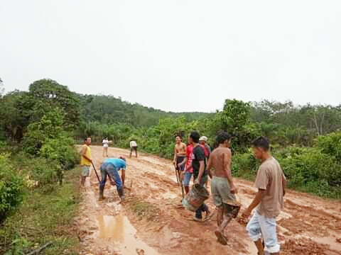 TELUK KUANTAN, RIAUMADANI. com - Rentanya Kecelakaan yang diakibatkan jalan licin, Masyrakat Desa Munsalo, Kecamatan Kuantan Tengah, Kuansing Riau, Lakukan Gotong Royong.