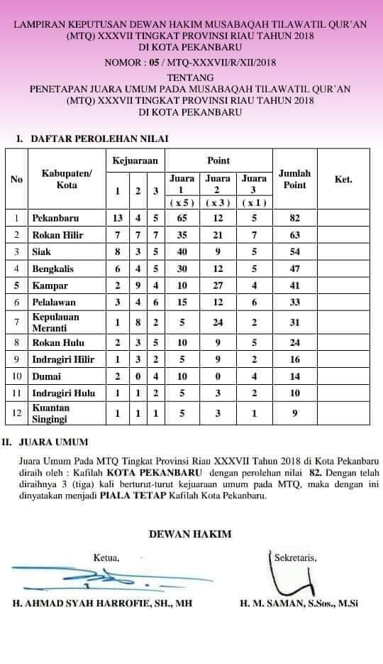 Tingakat Provinsi Riau yang dilaksakan di Kota Pekanbaru sudah berakhir,
