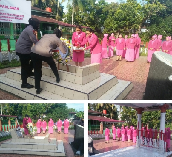 Riau madani. Com, TELUK KUANTAN - Ketua Cabang Bhayangkari Kuantan Singingi bersama pengurus dan anggota melaksanakan Upacara Ziarah Makam.
