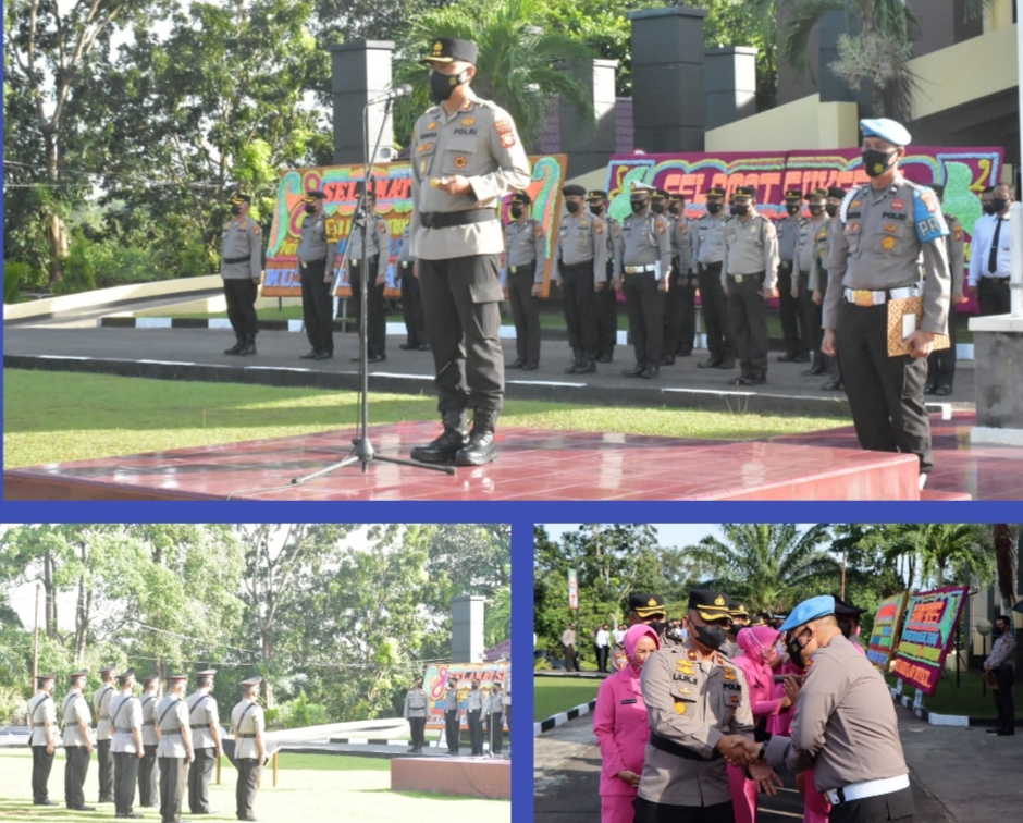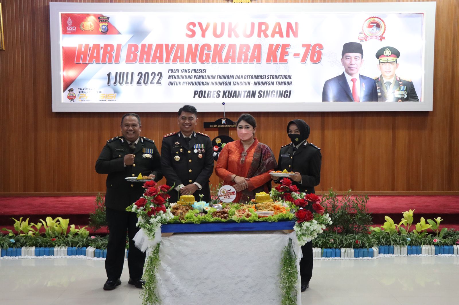 TELUK KUANTAN - Polres Kuantan Singingi melaksanakan kegiatan Syukuran Hari Bhayangkara ke-76 dengan tema "Polri yang.