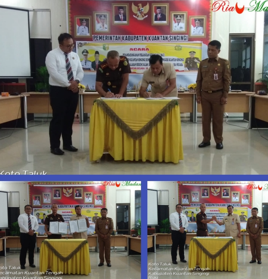 TELUK KUANTAN - Plt Bupati Kuansing Drs. H. Suhardiman Amby,. Ak,. MM menghadiri Penandatanganan.