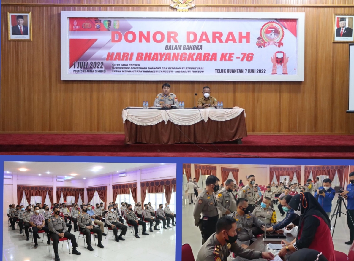 KUANTAN SINGINGI - Dalam rangka Hari Bhayangkara ke 76 Kapolres Kuansing AKBP Rendra Oktha Dinata, SIK M Si buka langsung kegiatan donor darah.