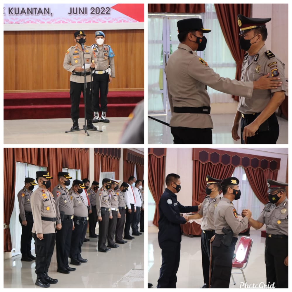 TELUK KUANTAN,- Kapolres Kuansing AKBP Rendra Oktha Dinata, SIK M.Si pimpin Upacara Laporan Kenaikan Pangkat Pengabdian Personel Polres Kuansing.