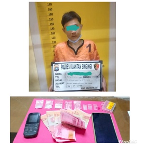 TELUK KUANTAN - Tim Opsnal Sat Resnarkoba Polres Kuansing mengamankan 1 (satu) orang laki – laki yang bernama inisial DD Alias D, 34 tahun, di Wisma Oshin Kelurahan Sei Jering Teluk Kuantan Kecamatan Kuantan Tengah Kabupaten.