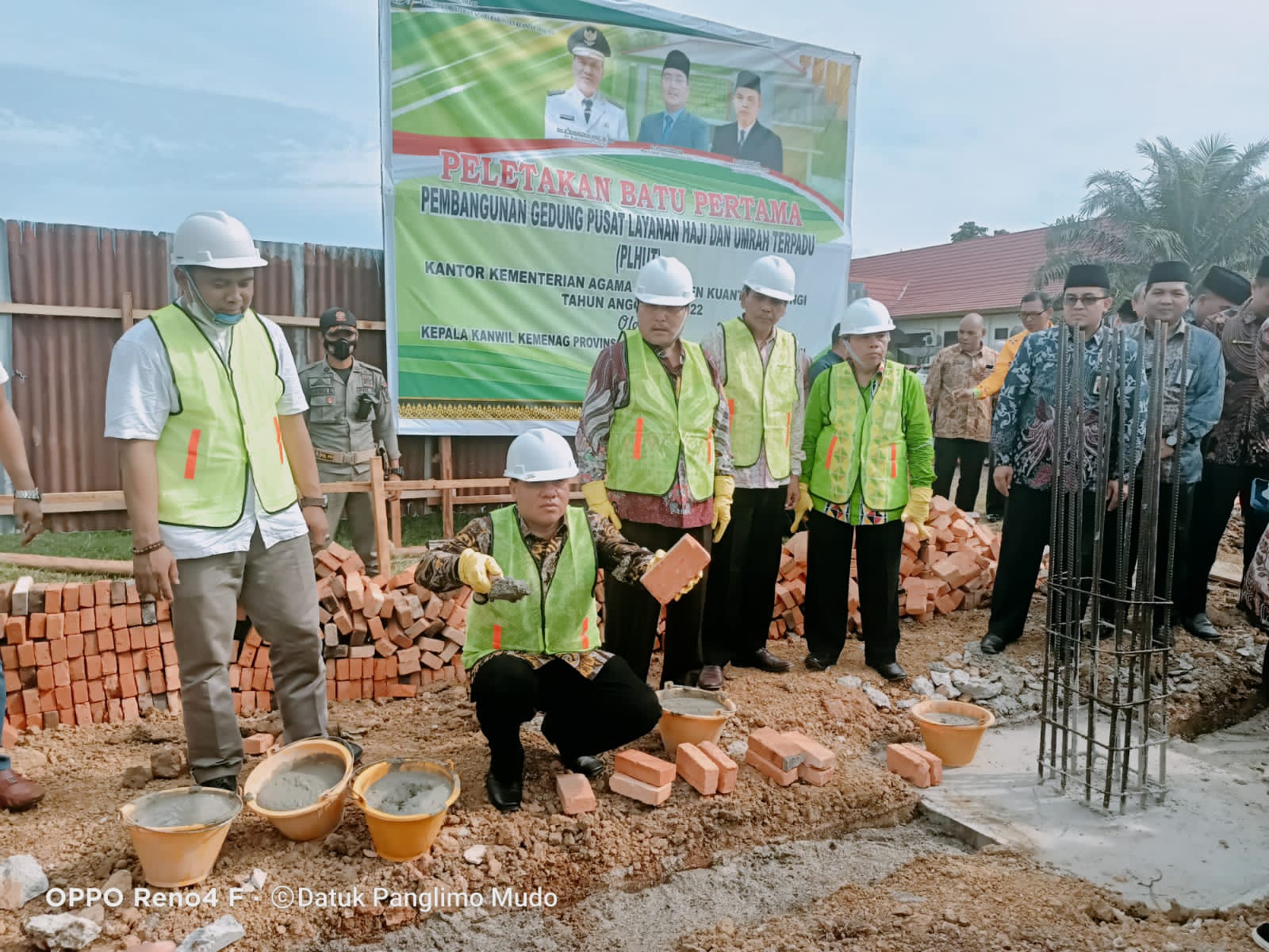 TELUK KUANTAN - Plt Bupati Kabupaten Kuantan Singingi yang di wakili oleh Sekda Kuansing H. Dedy Sambudy, SKep. SKM. MKes melakukan peletakan batu.