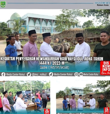 RIAUMADANI. COM, ROHUL - Pemerintah Kabupaten Rokan Hulu satu hari jelang Idul Adha 1443 H /2023 M di halaman pelataran Masjid Agung Islamic Center Pasir Pengaraian, serahkan Hewan Qurban yang bersumber dari.