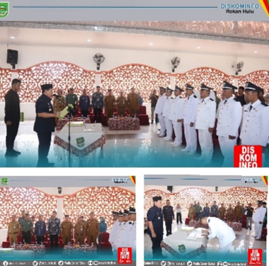 RIAUMADANI. COM, ROHUL - Bupati Kabupaten Rokan Hulu H.Sukiman secara resmi Lantik Delapan Kepala Desa Masa Bakti 2023 -.