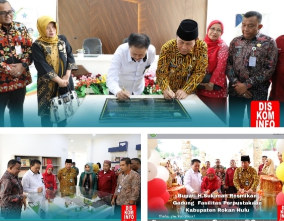 RIAUMADANI. COM. ROKAN HULU – Gedung Fasilitas Layanan Perpustakaan Kabupaten Rokan Hulu (Rohul) yang megah dan representatif yang dibangun melalui Melalui Dana Alokasi Khusus (DAK).
