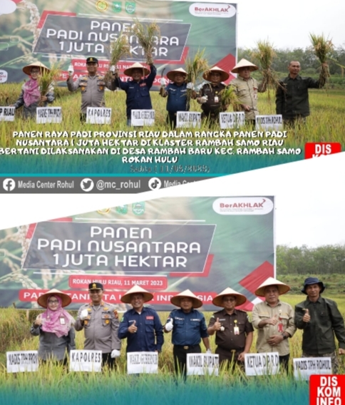 RIAUMADANI. COM. ROKAN HULU - Panen Raya Padi Provinsi Riau Dalam Rangka Panen Padi Nusantara 1 juta Hektar di Klaster Rambah Samo Riau Bertani dilaksanakan di Desa Rambah Baru Kec. Rambah Samo Rokan Hulu, Sabtu (.