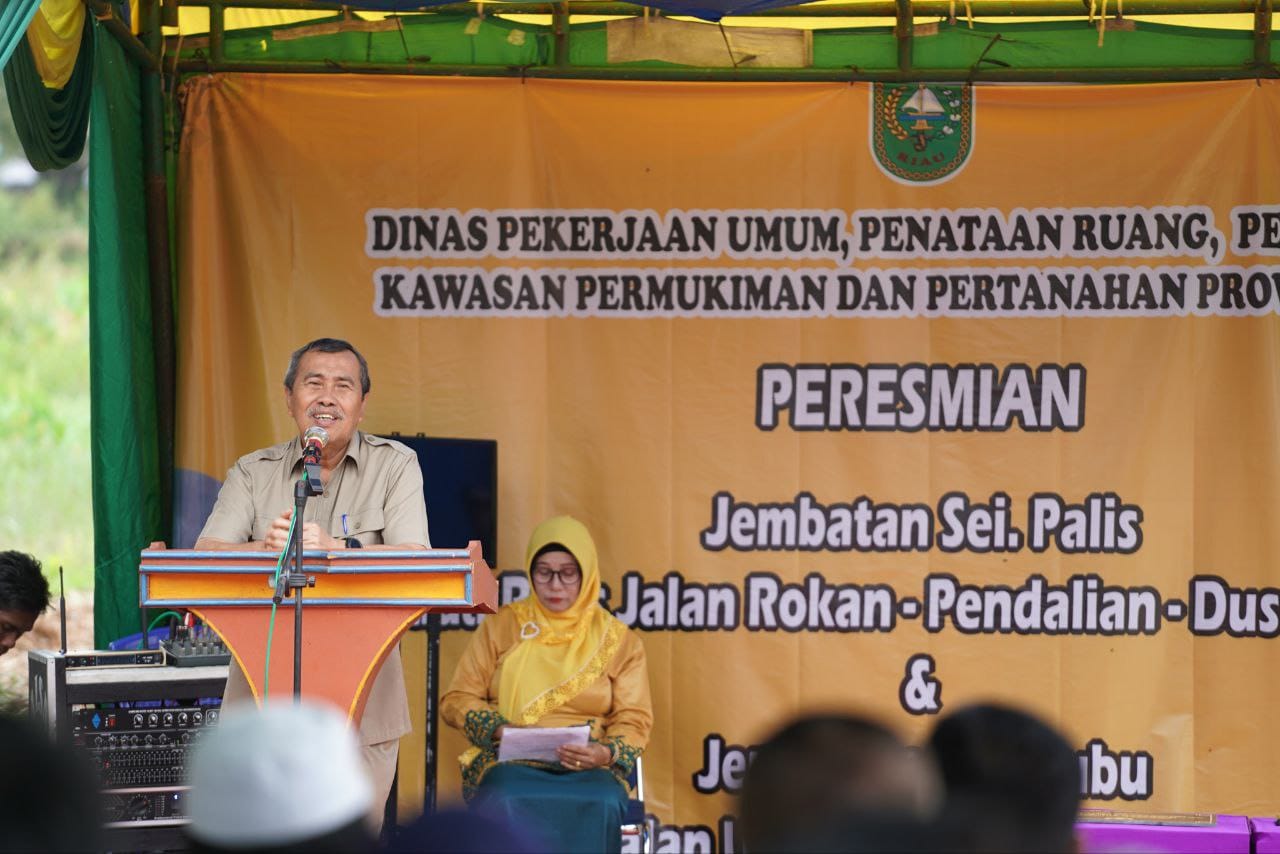 RIAUMADANI. COM, ROKAN HULU - Gubernur Riau, Syamsuar meresmikan Jembatan Sei Palis pada ruas jalan Rokan-Pendalian-Dusun Batas, dan Jembatan Sei Kubu pada ruas jalan Ujung Batu Rokan-Batas Sumatera Barat (Sumbar), Sabtu.