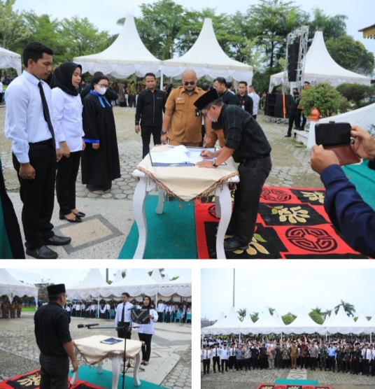 RIAU MADANI.COM. ROKAN HULU - Bupati Rokan Hulu (Rohul) H. Sukiman resmi melantik dan mengambil sumpah jabatan 58 Kepala Desa masa Jabatan.