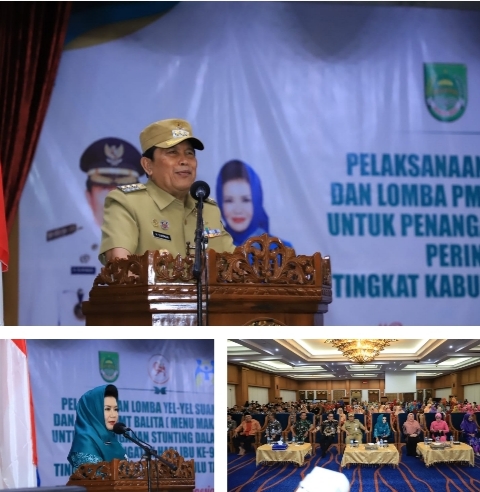 RIAUMADANI.COM. ROKAN HULU, Pasir Pengaraian - Acara lomba yel-yel suami siaga dan lomba PMT balita (menu makan siang) untuk penanganan stunting dalam rangka peringatan Hari Ibu ke.